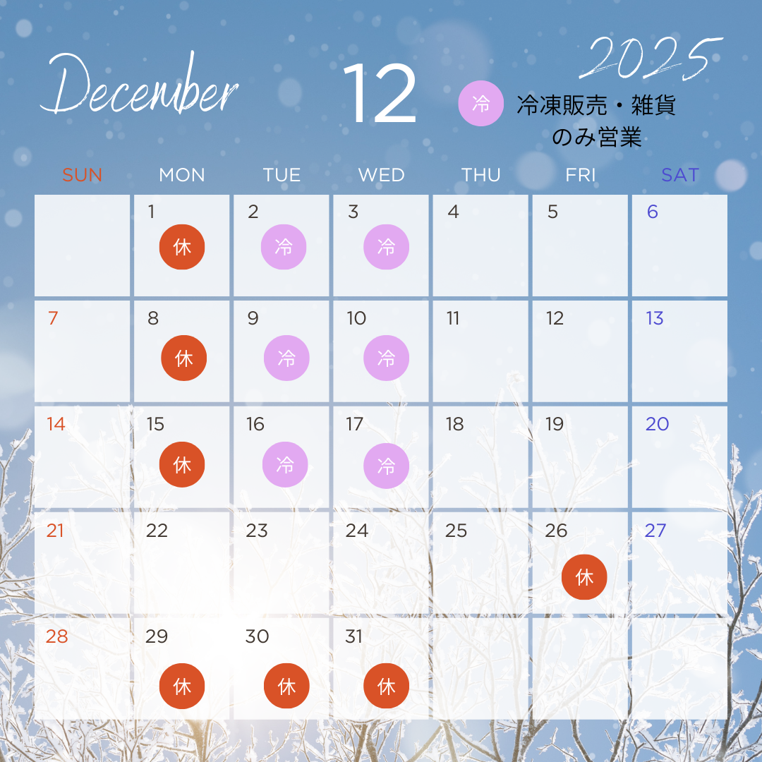 当店の12月の営業カレンダーになります!お越しの際はお気をつけてご来店ください。